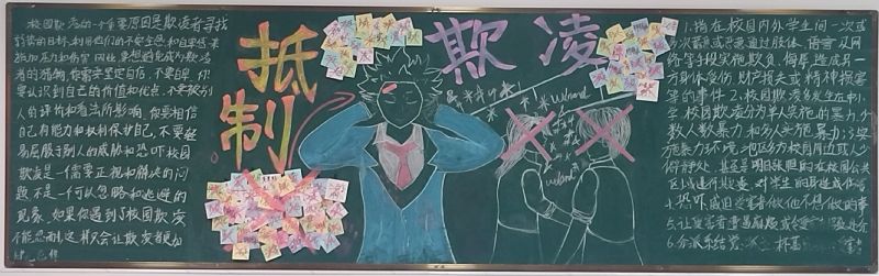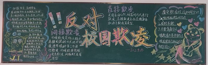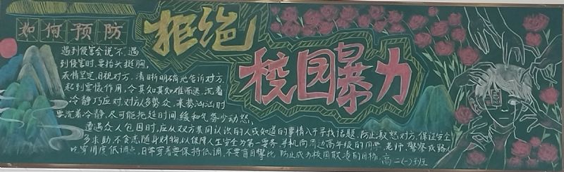為預(yù)防校園暴力事件,構(gòu)建平安和諧校園,增強(qiáng)學(xué)生法治知識(shí),提高學(xué)生安全防范意識(shí)和自我保護(hù)能力。10月份我校開(kāi)展了以“預(yù)防校園暴力、杜絕欺凌事件”為主題的板報(bào)活動(dòng),引領(lǐng)全體學(xué)生自覺(jué)遵守法律法規(guī)、校規(guī)校紀(jì),理性對(duì)待同學(xué)之間的矛盾糾紛,克制不良行為。10月底,學(xué)生會(huì)秘書部在校團(tuán)委羅書記的帶領(lǐng)下對(duì)本次黑板報(bào)進(jìn)行了檢查和評(píng)比,201班、202班、204班黑板報(bào)榮獲優(yōu)秀等級(jí)。