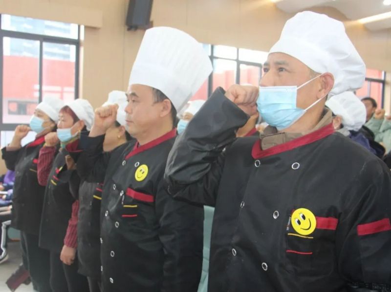 儀式最后,全體后勤人員莊嚴(yán)宣誓,他們將牢記學(xué)校重托,認(rèn)真履行崗位職責(zé),恪守學(xué)校規(guī)章制度,鉆研業(yè)務(wù),提高技能,努力工作,真心服務(wù),為維護(hù)學(xué)校有機(jī)運(yùn)轉(zhuǎn)和優(yōu)良秩序孜孜不倦、任勞任怨,為學(xué)生吃好每頓飯、睡好每個(gè)覺、上好每節(jié)課、參加好每個(gè)活動(dòng)、過好每一天而保駕護(hù)航!