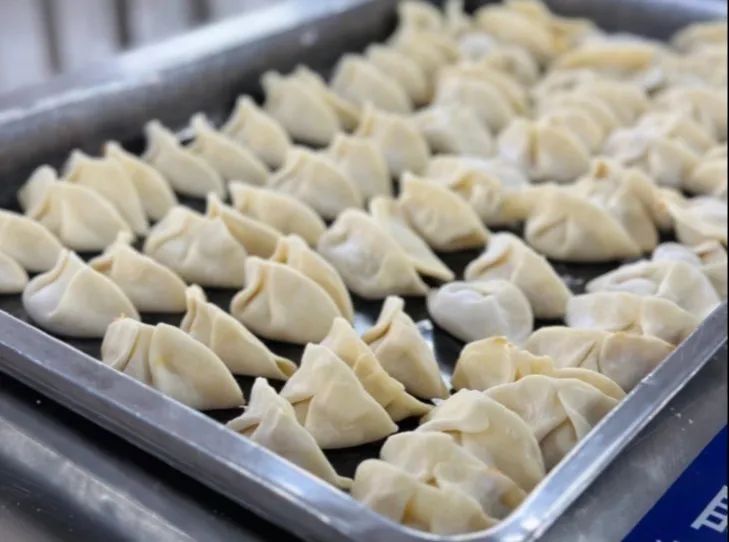 活動(dòng)當(dāng)天,每班派來的五名包餃子大使“全副武裝”聚在食堂,歡聲笑語此起彼伏,他們躍躍欲試,迫不及待地要一顯身手。