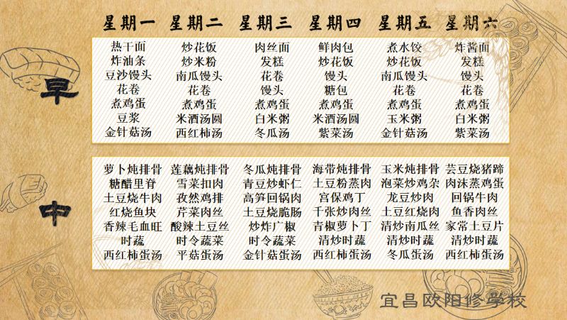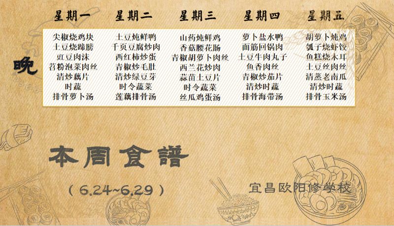 宜昌歐陽修學(xué)校每周食譜(6月24日至6月29日)