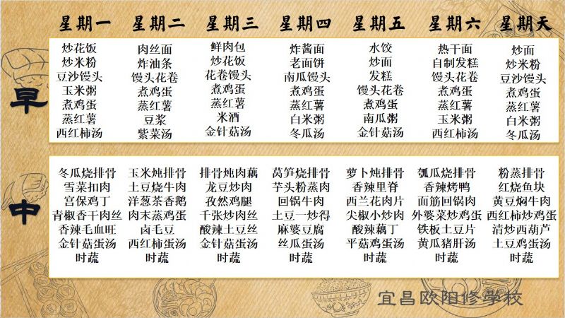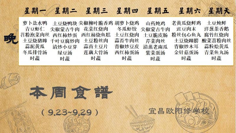 宜昌歐陽修學(xué)校每周食譜(9月23日至9月30日)