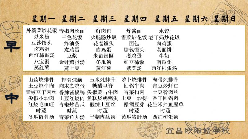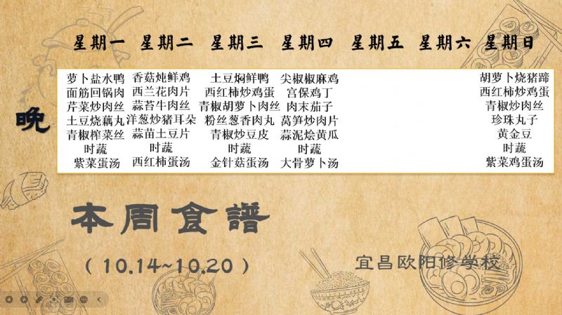 宜昌歐陽(yáng)修學(xué)校每周食譜(10月14日至10月20日)