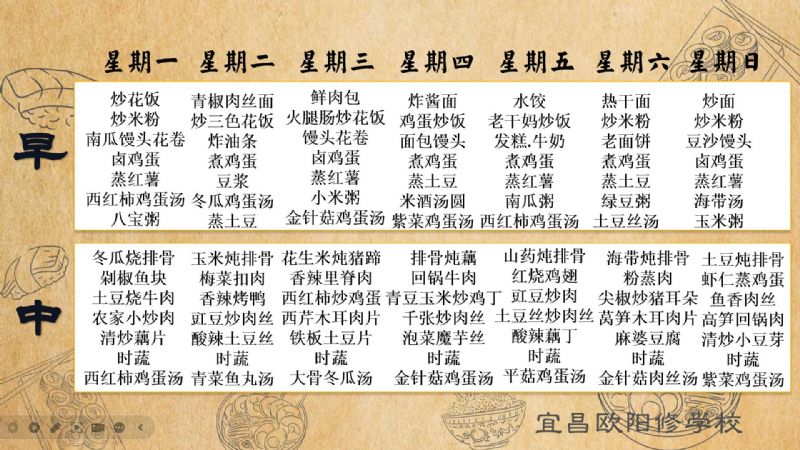 宜昌歐陽修學(xué)校每周食譜(10月21日至10月27日)