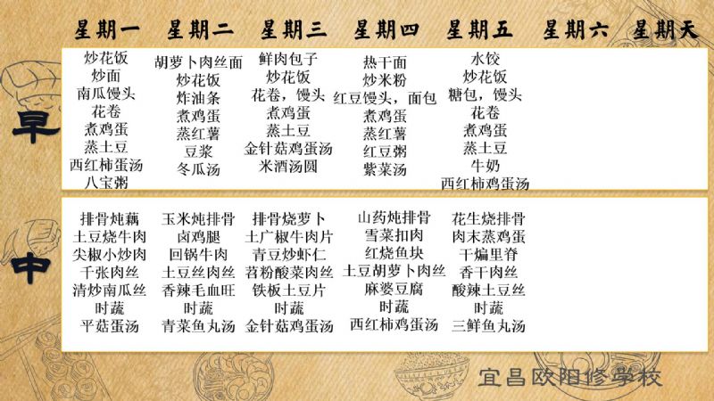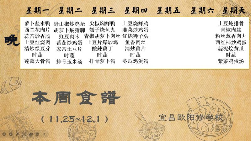 宜昌歐陽修學校每周食譜(11月25日至12月1日)