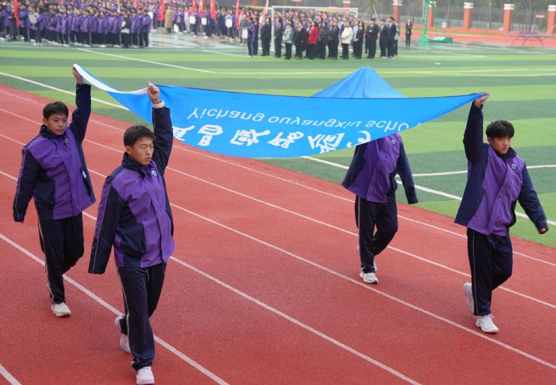 今天上午,運(yùn)動(dòng)會(huì)開(kāi)幕式在莊嚴(yán)的國(guó)歌聲中正式拉開(kāi)序幕。伴隨著雄壯的運(yùn)動(dòng)員進(jìn)行曲,國(guó)旗隊(duì)、彩旗隊(duì)、花束隊(duì)依次走過(guò)主席臺(tái),鮮艷的五星紅旗在藍(lán)天下迎風(fēng)飄揚(yáng)。