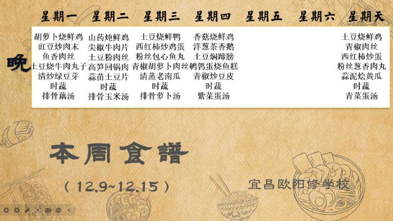 宜昌歐陽(yáng)修學(xué)校每周食譜(12月9日至12月15日)