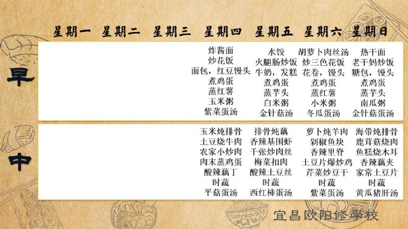 宜昌歐陽修學(xué)校每周食譜(12月30日至1月5日)