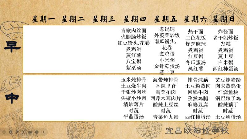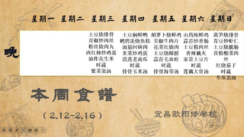 宜昌歐陽修學(xué)校每周食譜(2月12日至2月16日)