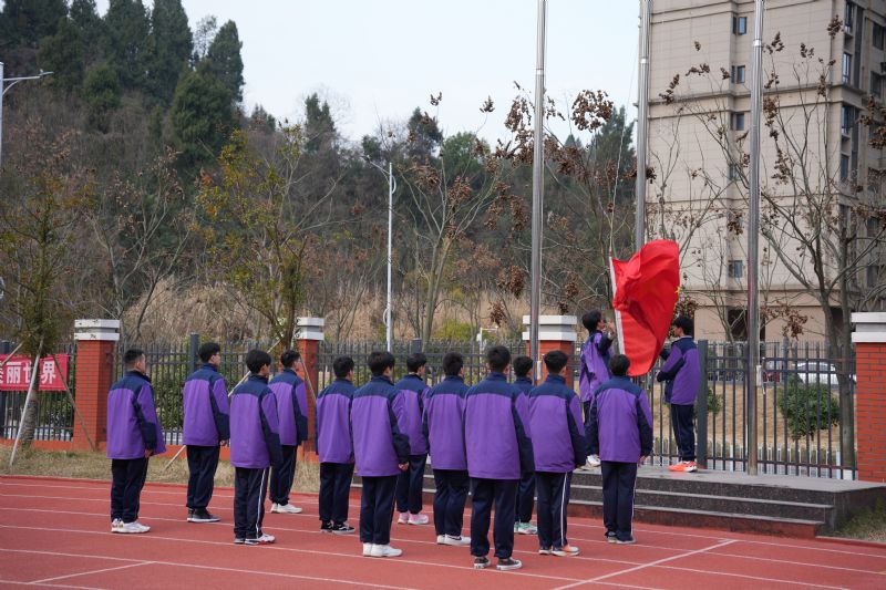 伴隨著激昂有力的《義勇軍進行曲》,國旗班的同學(xué)們身著整潔的制服,身姿挺拔如松,步伐矯健有力。升旗手目光堅毅,雙手緊握國旗一角,隨著國歌激昂的旋律,奮力將國旗高高揚起,恰似燃燒的火炬,瞬間點燃了在場每一個人心中奮進的火種,驅(qū)散慵懶,喚醒朝氣。