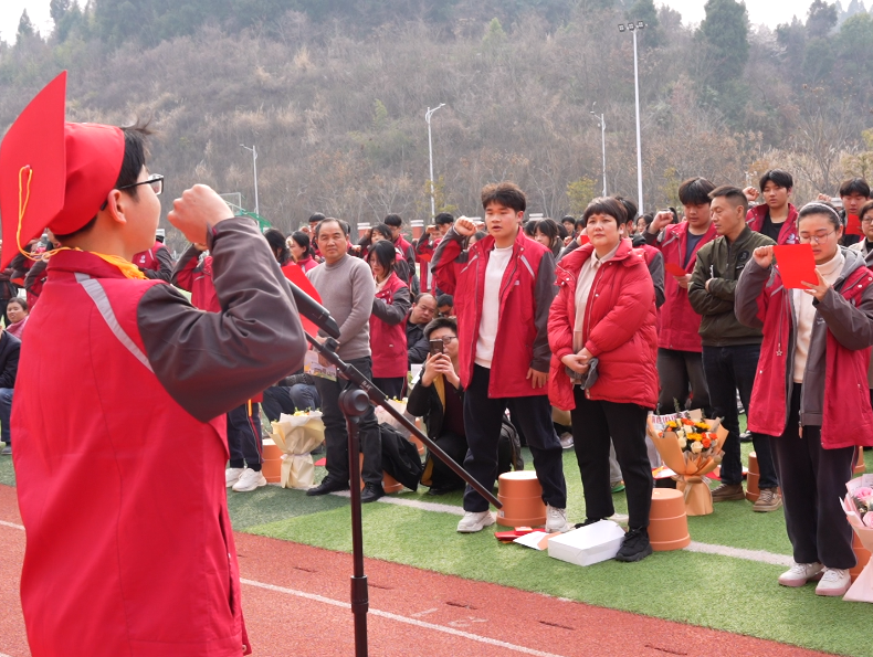 十八歲的人生路口,同學(xué)們立下青春的誓言,聲音清澈而堅(jiān)定,宣告著他們對(duì)未來(lái)的憧憬與擔(dān)當(dāng)。最后的一百天沖刺時(shí)刻,誓言再次響徹,帶著破釜沉舟的決心,向著夢(mèng)想全力進(jìn)發(fā)。緊接著,教師們以崇高的職業(yè)之名鄭重宣誓,承諾用愛(ài)與責(zé)任,為學(xué)生保駕護(hù)航。層層的誓言回蕩在傾滿暖陽(yáng)的操場(chǎng)。師生的瞳孔里搖曳著相同的火苗,那些在誓詞里發(fā)酵的渴望和熱情,終將在時(shí)光中兌換成真實(shí)的榮耀。